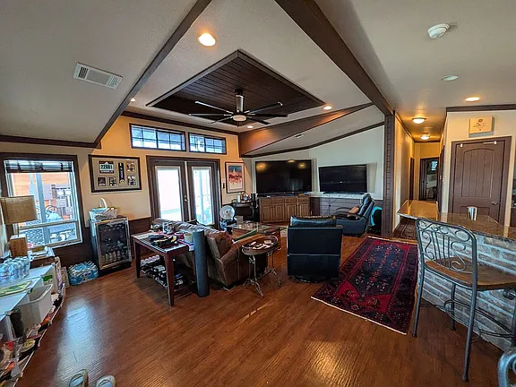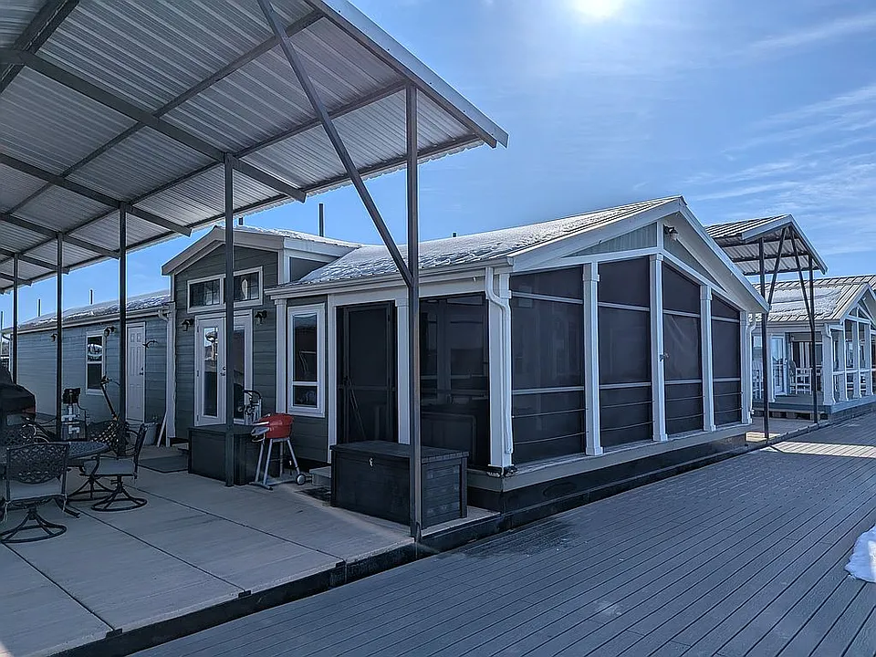 Experience lake life at its finest with this beautifully maintained floating vacation home, perfectly positioned on Lake Texoma to capture breathtaking open-water views, sunrises, and sunsets. Located within the private Harbor Village community at Flowing Wells Resort & Marina, this property offers a rare opportunity to own a true waterfront retreat, right on the water.
