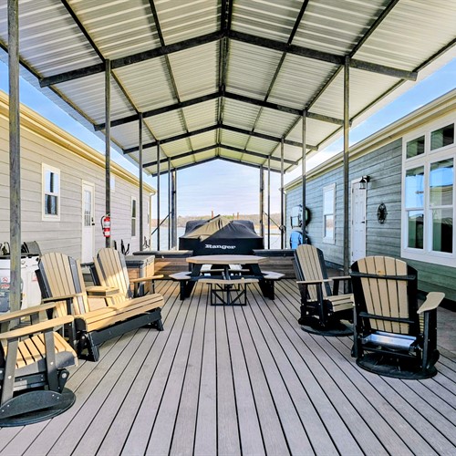 The property includes a private 15' x 35' boat slip, providing immediate access to the water, along with extended decking and a generous 35' x 20' patio, ideal for entertaining, dining, or relaxing lakeside.