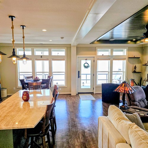 3 Bed 2 bath | 1,600 sqft | Turnkey luxury floating home, plus covered porch & patio, 15x35 covered slip. Fully furnished with golf cart and tritoon included.