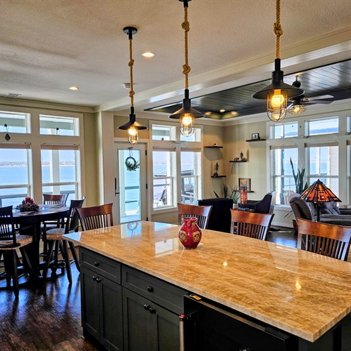 The outdoor living space is perfectly designed for hosting guests or unwinding after a day on the water. Custom upgrades and meticulous maintenance throughout the home reflect the exceptional care and attention to detail invested in this property. The interiors are tastefully finished to capture the rustic charm of lakeside living while offering modern amenities for everyday comfort.