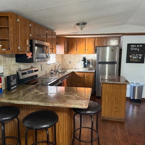 This charming vacation home is now available and offers the perfect blend of comfort and lakeside living. Tucked away in the peaceful setting of Flowing Wells Resort & Marina, the home features a spacious extended deck ideal for relaxing or entertaining, a brand-new roof (November 2025), and comes fully furnished for immediate enjoyment.